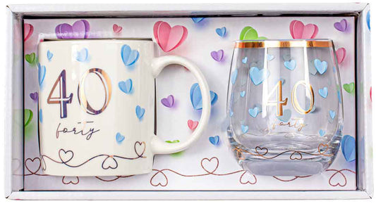 40TH BIRTHDAY MUG AND STEMLESS GLASS GIFT SET