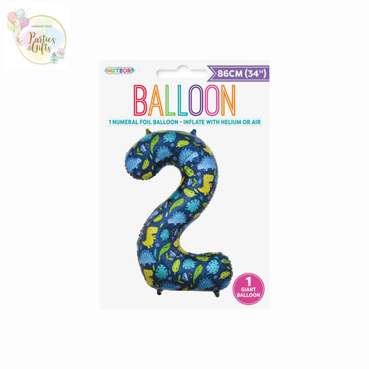 GIANT FOIL BALLOON - DINOSAUR NUMBER 2 - 86CM