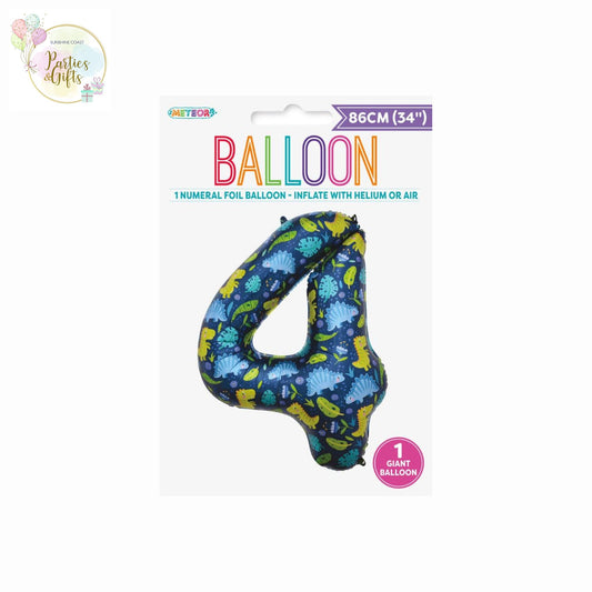 GIANT FOIL BALLOON - DINOSAUR NUMBER 4 - 86CM