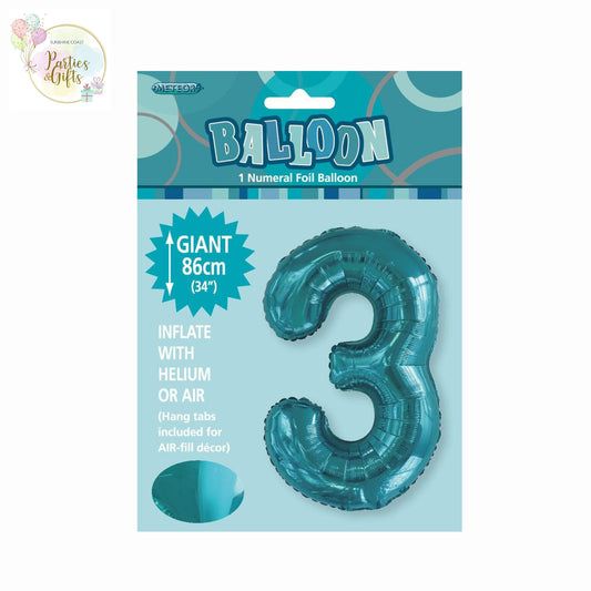GIANT FOIL BALLOON - CARIBBEAN TEAL NUMBER 3 - 86CM