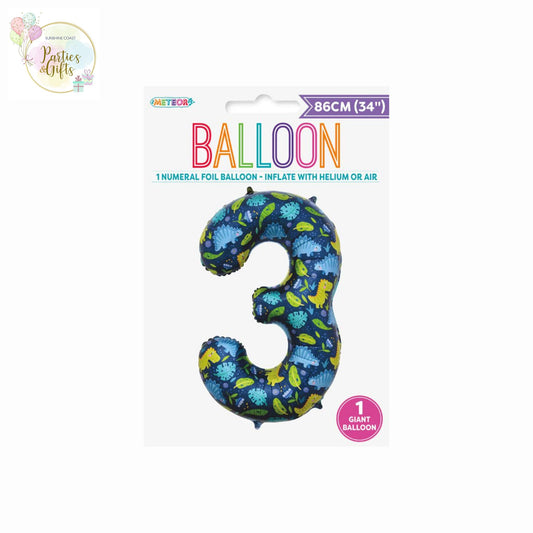 GIANT FOIL BALLOON - DINOSAUR NUMBER 3 - 86CM