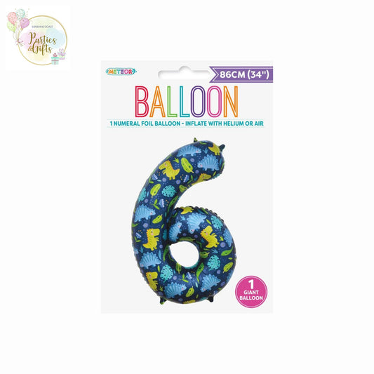 GIANT FOIL BALLOON - DINOSAUR NUMBER 6 - 86CM