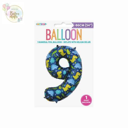 GIANT FOIL BALLOON - DINOSAUR NUMBER 9 - 86CM