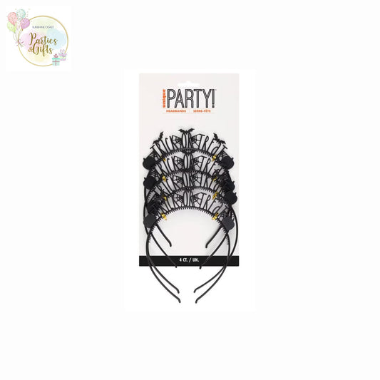 COSTUME ACCESSORY - HALLOWEEN TRICK OR TREAT BLACK ACRYLIC HEADBAND - PACK OF 4