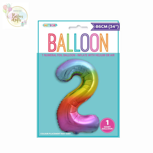 GIANT FOIL BALLOON - RAINBOW NUMBER 2 - 86CM