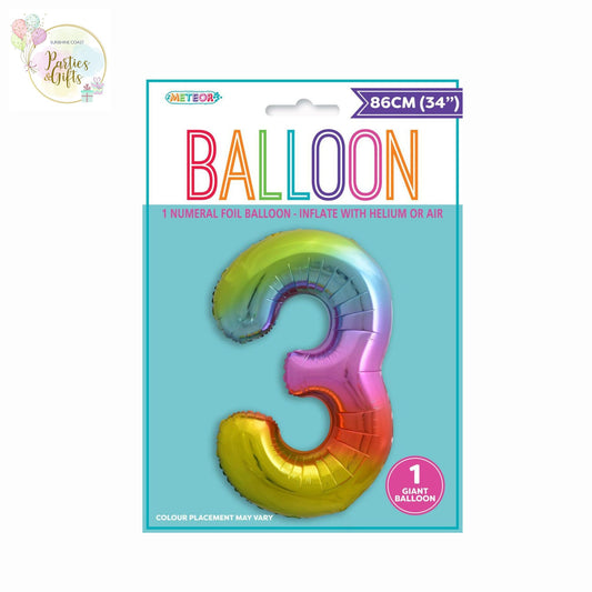 GIANT FOIL BALLOON - RAINBOW NUMBER 3 - 86CM