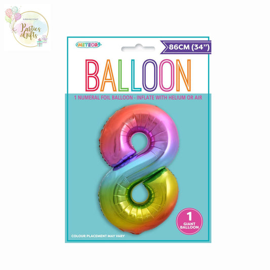 GIANT FOIL BALLOON - RAINBOW NUMBER 8 - 86CM