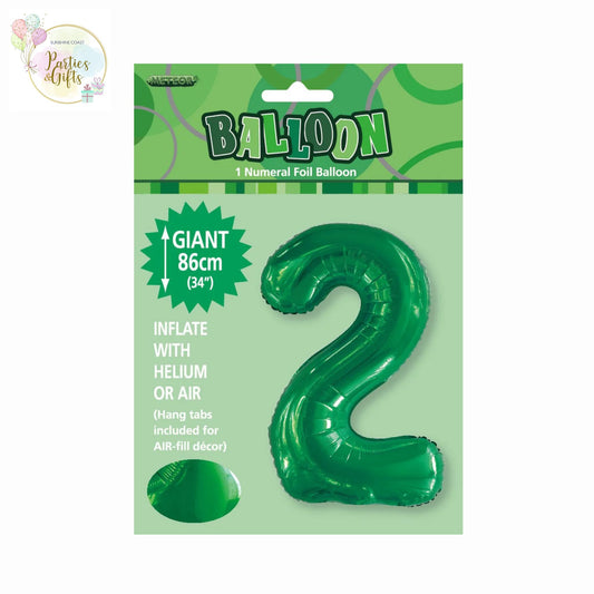 GIANT FOIL BALLOON - EMERALD GREEN NUMBER 2 - 86CM