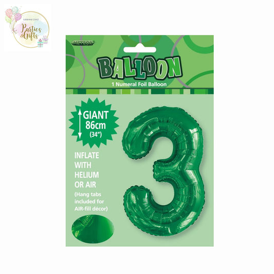 GIANT FOIL BALLOON - EMERALD GREEN NUMBER 3 - 86CM