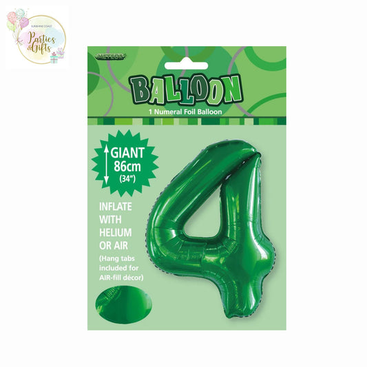 GIANT FOIL BALLOON - EMERALD GREEN NUMBER 4 - 86CM