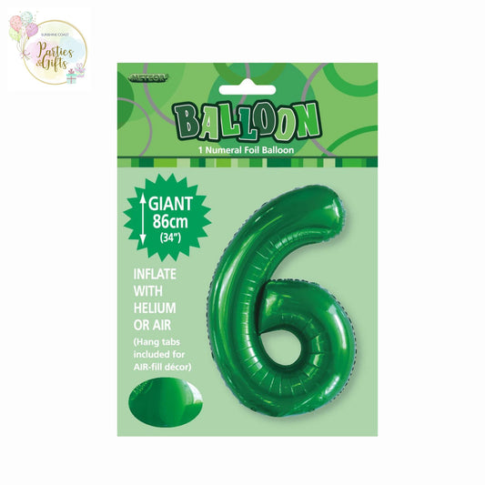 GIANT FOIL BALLOON - EMERALD GREEN NUMBER 6 - 86CM