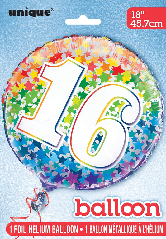 RAINBOW 16TH BIRTHDAY FOIL BALLOON - 45.7CM