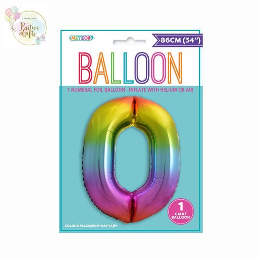 GIANT FOIL BALLOON - RAINBOW NUMBER 0 - 86CM