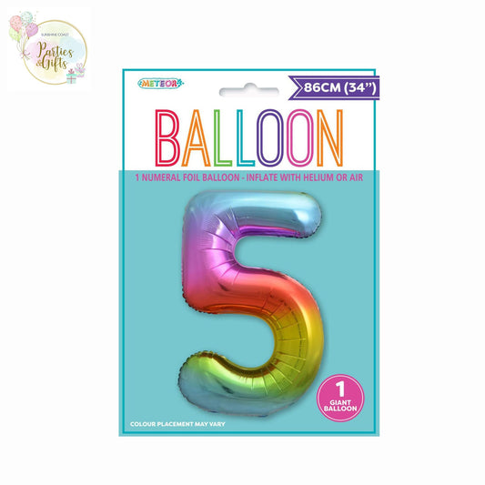 GIANT FOIL BALLOON - RAINBOW NUMBER 5 - 86CM