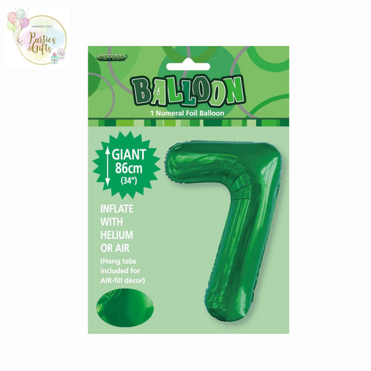GIANT FOIL BALLOON - EMERALD GREEN NUMBER 7 - 86CM