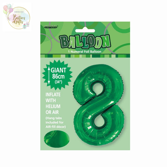 GIANT FOIL BALLOON - EMERALD GREEN NUMBER 8 - 86CM