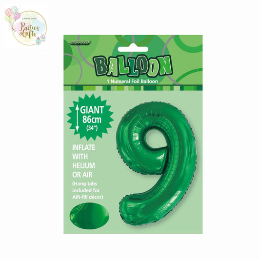 GIANT FOIL BALLOON - EMERALD GREEN NUMBER 9 - 86CM