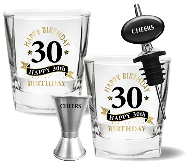 30TH BIRTHDAY SPIRIT GLASS GIFT SET - 4 PIECE GIFT SET
