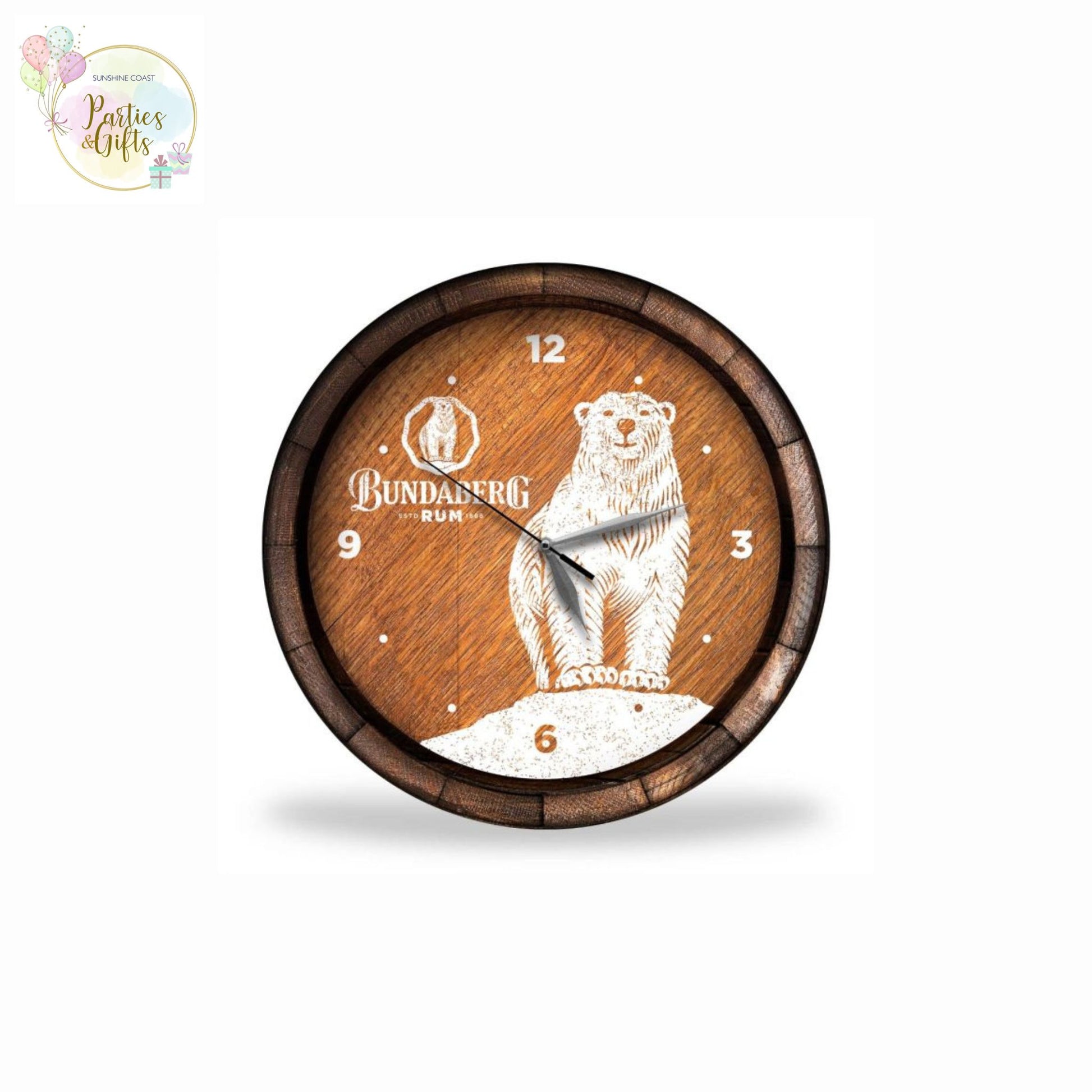 Bundaberg Rum Bundy Bear Wooden Barrell Wall Clock