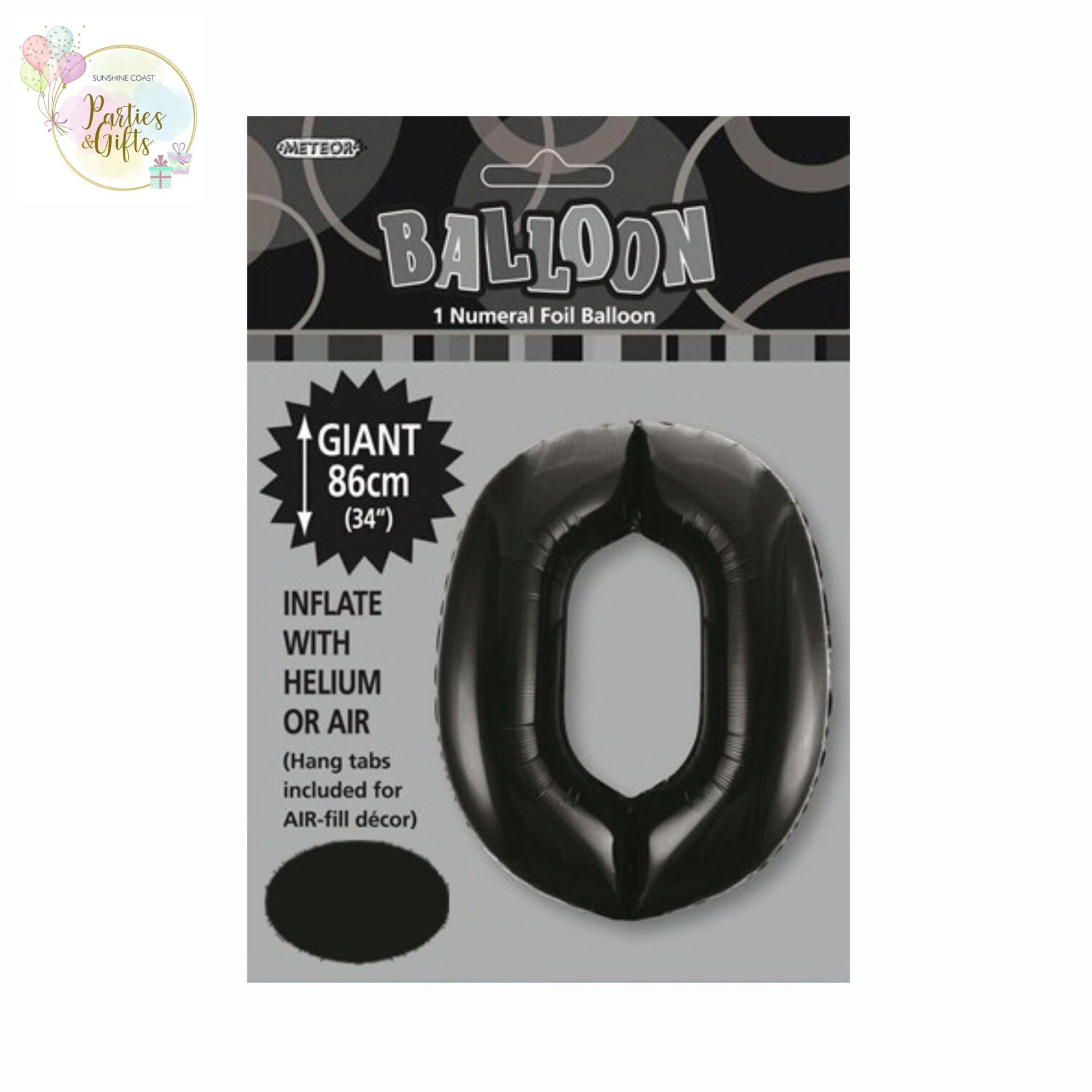 GIANT FOIL BALLOON - BLACK NUMBER 0 - 86CM