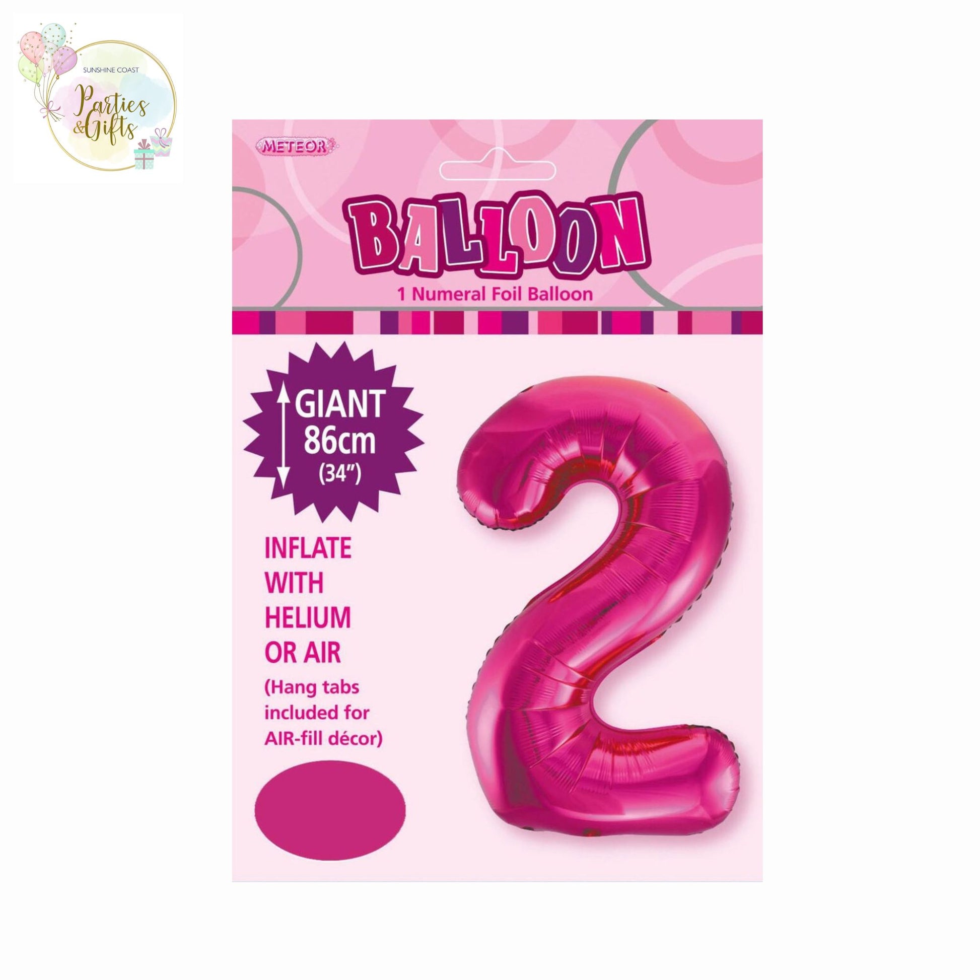 GIANT FOIL BALLOON - HOT PINK NUMBER 2 - 86CM