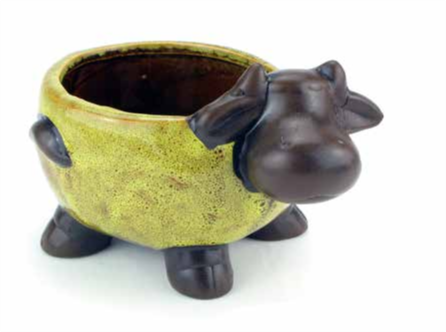 GLAZED CERAMIC COW PLANTER - SMALL