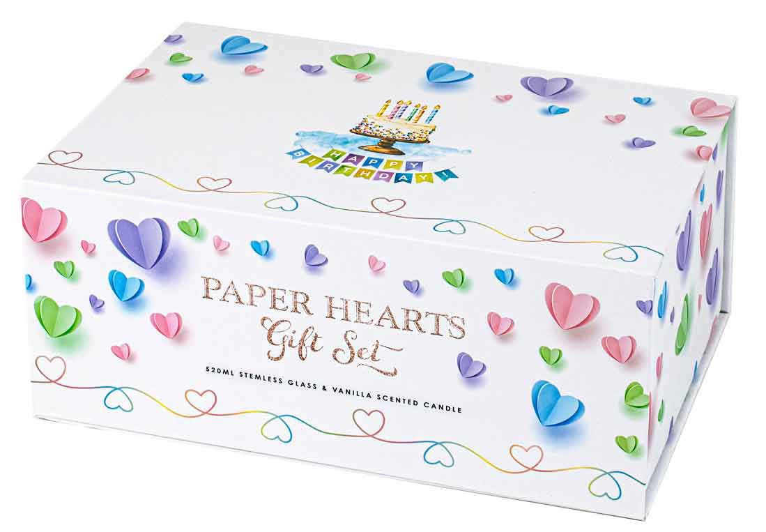 - 520ml Stemless Glass which reads “Happy Birthday”.