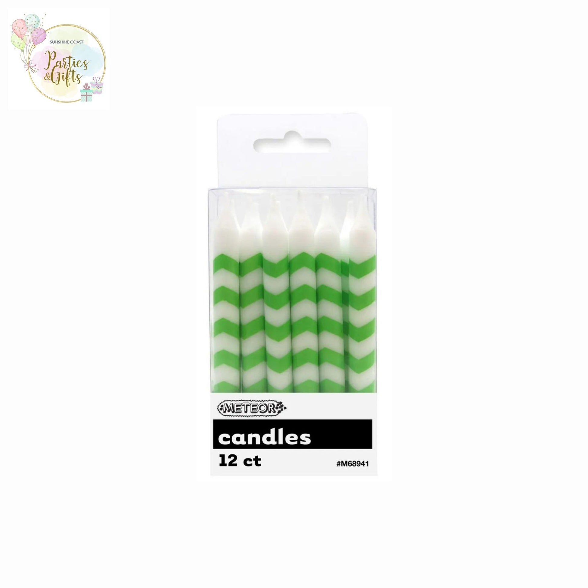 LIME GREEN CHEVRON CANDLES - PACK OF 12
