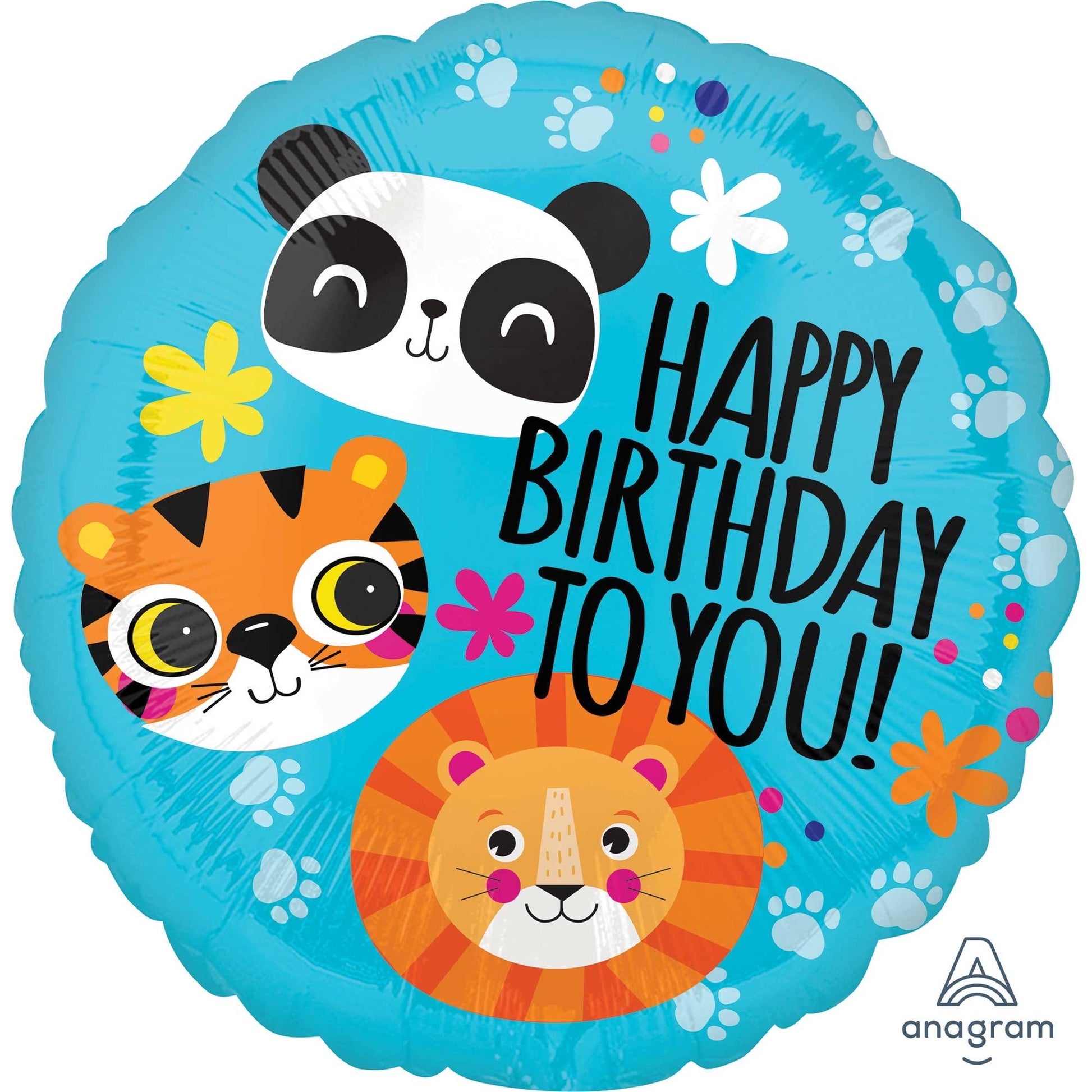Lion, Tiger And Panda Happy Birthday To You Foil Balloon - 45cm