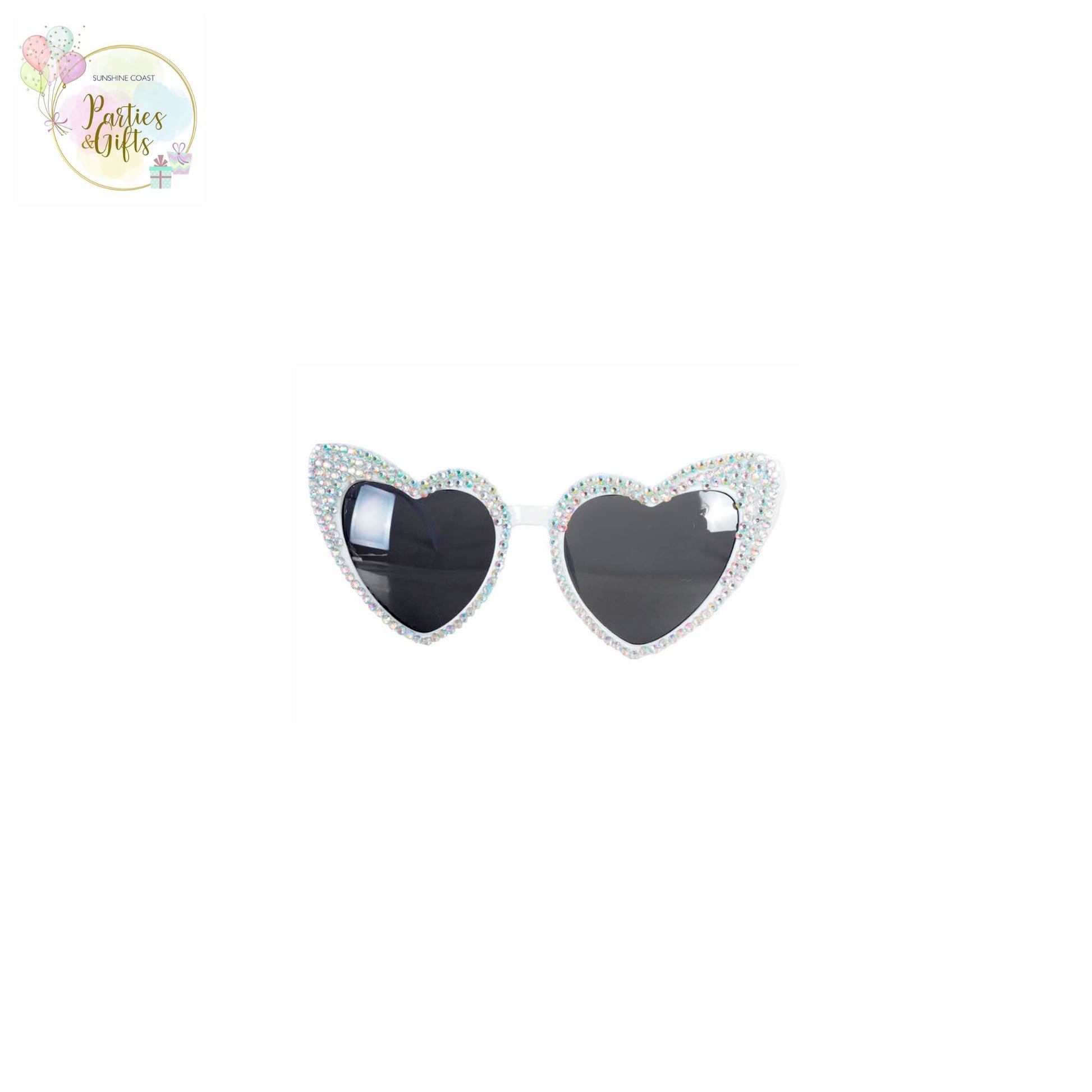 PARTY GLASSES - DIAMANTE HEART - WHITE