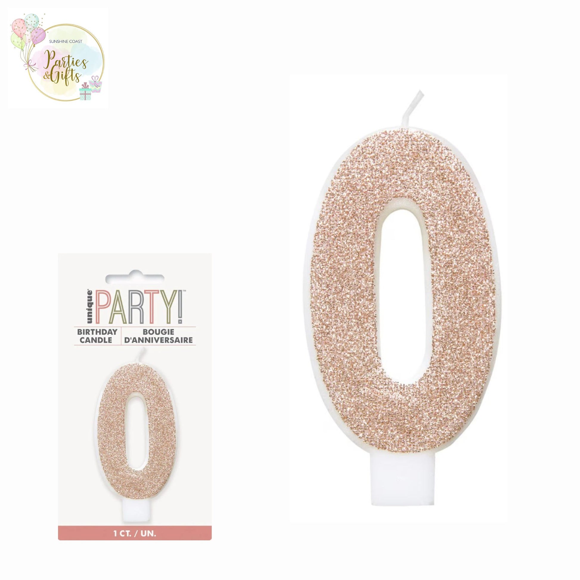 ROSE GOLD GLITTER NUMERAL CANDLE - # 0