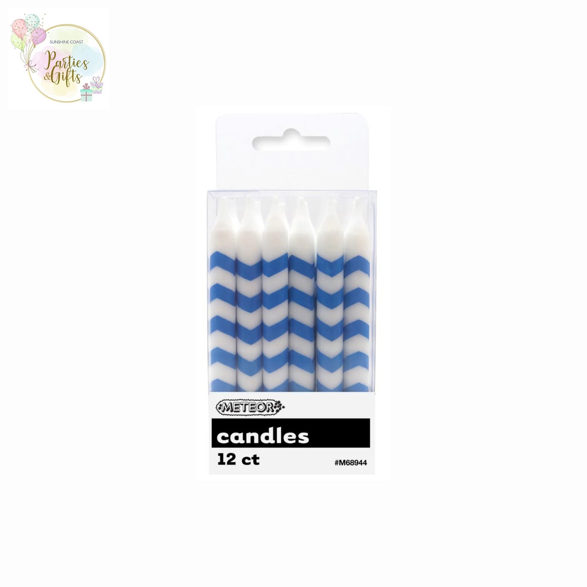 ROYAL BLUE CHEVRON CANDLES - PACK OF 12