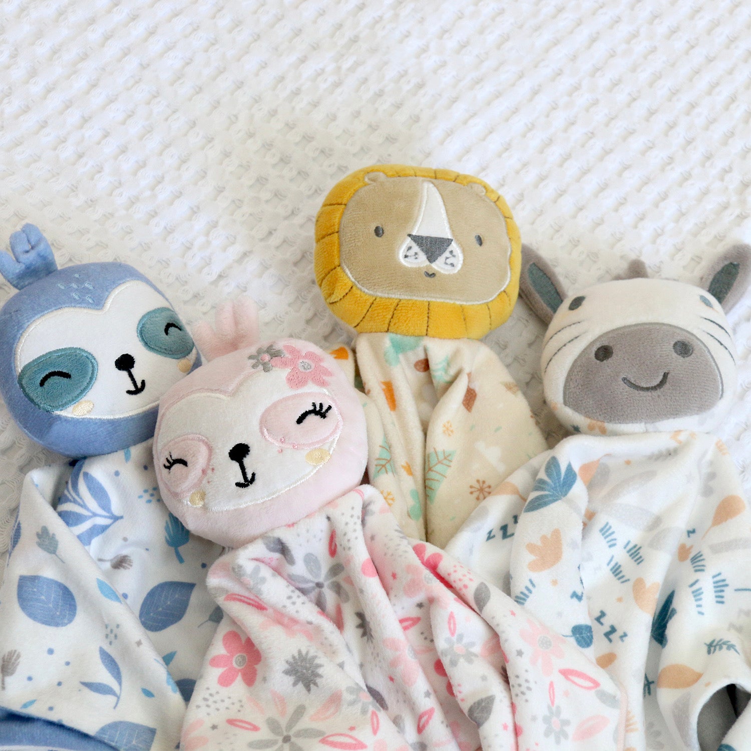 The all-new plush comforters designed for little ones! Meet Sofia the Sloth, one of four characters designed for play, comfort and stimulation. Designed with sensory development in mind, Sploshkins are safe to chew and snuggle, offering a sense of warmth and security. With a velvet-feel textured body and ultra-soft face, each Sploshkin helps to provide varied tactile experiences as babies grow from birth to 18 months. Machine-washable and made from a luxe crystal velvet with a cotton jersey lining, these are sure to become a cherished childhood favourite.